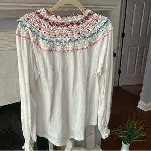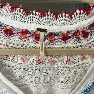 Free People Siesta Fiesta Embroidered Boho Knit Top Peasant Henley Crochet Med