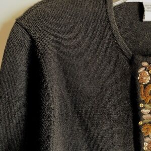 Diane Von Furstenberg Soft Wool Intricately Embellished Front Tab Crop Sweater