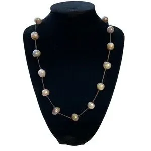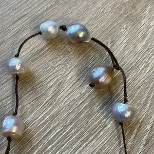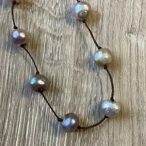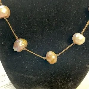 Nice on leather chain with man-made pearls in a pink ash color. Purchased and never worn.