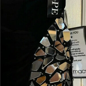 XSCAPE One-Shoulder Broken-Mirror Detail Gown Size 14 NWT