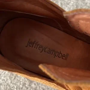Perfect for fall winter Jeffrey Campbell caramel colored suede booties. Chunky 3 inch heel, can be dressed up or down. Really great condition with some minor darker spots as shown in photos. This is not take away from these awesome boots.