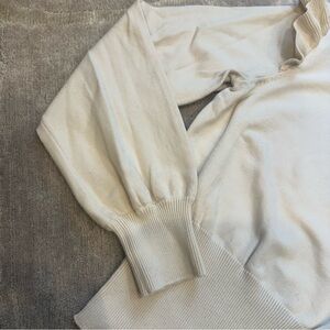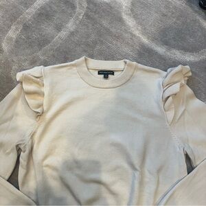 Who What Wear Beige Ruffle Sleeve Crew Neck Sweater
