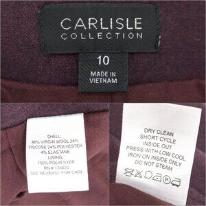Carlisle Collection Virgin Wool Blend Pants Womens Burgundy Side Zip Lined Sz 10