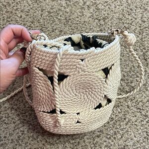 Zara beige woven bucket bag. Has a drawstring for the inner lining. Almost new condition.