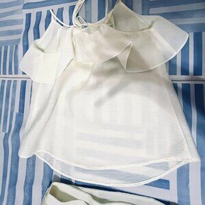 Club Monaco Ivory Tie Waist Trousers & Matching Ruffled String Tie Top