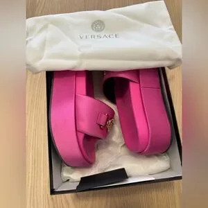 PFF ONLY 💕VERSACE Medusa Biggie Satin Platform Sandals size 37.5 (US 7)