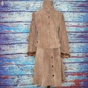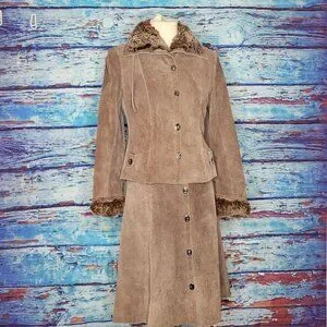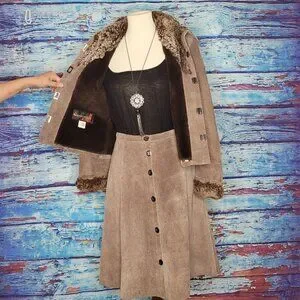 This beautiful leather skirt and coat are in FANTASTIC condition. Very Small but very unique.