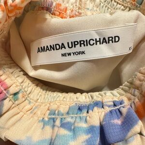 Very cute and fun watercolor paint splatter print mini dress. This sleeveless dress is fully lined. Stretchy turtleneck style collar.