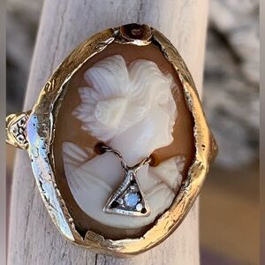 Vintage * Estate * SECO 10k Gold Cameo & Diamond Ring