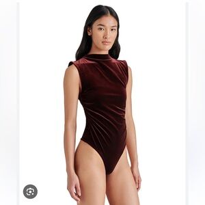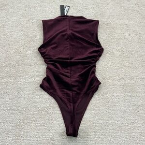 Steve Madden Esen Burgundy Wine Stretch Velvet Mock Neck Tank Bodysuit NWT
