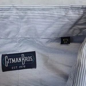 For Sale: Gitman Bros Shirt Mens 17.5/34 Long Sleeve Button Up StripedMeasurements: Check photos for measurements.Thanks for shopping with us!Condition: Great condition. No tears, stains, holes, pilling or loose stitching. See pictures for more details.