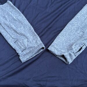 Dropped hem for enhanced coverage Thumbholes & wrapped seams keep sleeves secure