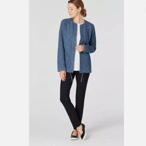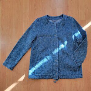 J.Jill Indigo Cinch Hem Textured Cotton Snap Front Jacket with Pockets - S