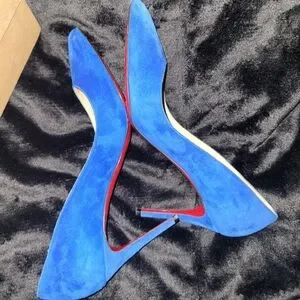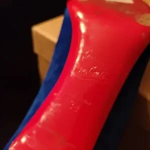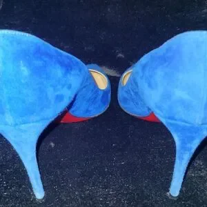 Listing is for a pair of gently used Pigalle Follies in China blue suede 38. Heels are 85mm height. These were purchased from the real real last month. They are pre-owned and show wear. Soles have been slightly touched up with custom CL paint. Return sticker is still attached. These come with 1 CL dustbag and a spare CL box. Purchased these without the original box. Love the color and heel height but I prefer a snug fit.
