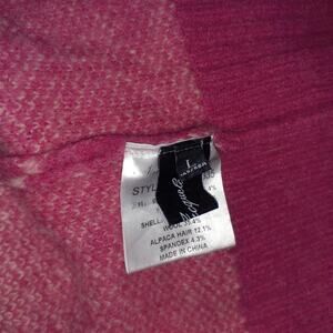 Nana Jacqueline 'Daphne' Diamond Cardigan Size L: front gold-tone button closure, ribbed trim, midweight fuzzy knit fabric.