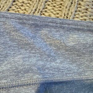 These Outdoor Voices Warmup cropped leggings in Dove Ash color are perfect for workouts or casual wear, featuring a stylish gray and white design. Ideal for those seeking comfort and style, they offer a flattering fit in a woman's size XL.