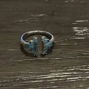 Lab created aquamarine ice crystal with .925 solid sterling silver.