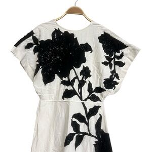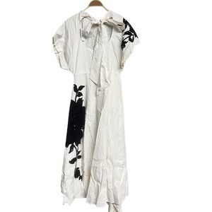 New Karen Millen Linen Cotton Hand Embellished Bow Detail Midaxi Midi Dress