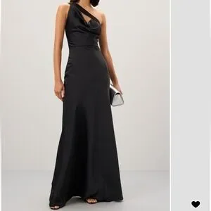 Black (Self: 100% Polyester, Contrast: 90% Recycled Rayon, 9% Nylon, 1% Spandex). Gown. Sleeveless. One-shoulder neckline. Back zipper closure. 58" from shoulder to hemline. Imported.