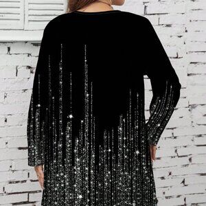 Black Casual Women's Glitter Ombre Design Regular Jacket