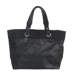 CHANEL Leather Canvas Tote