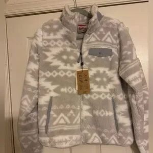 NWT Gerry Terra Printed Zip Up High Pile Fleece Jacket size M Grey Aztec