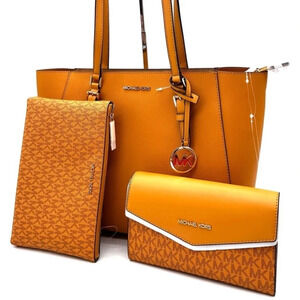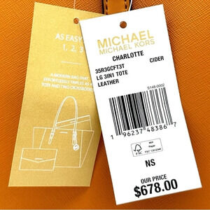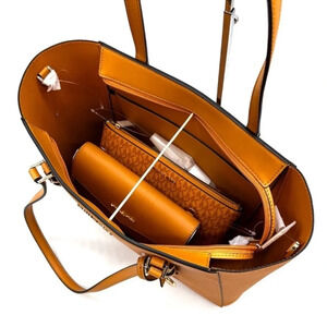 Michael Kors Charlotte LG Tote Bag 3 IN 1 Leather Shoulder Bag Cider