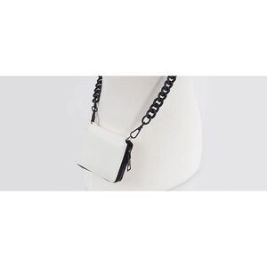 White credit card wallet with black chain. 2nd photo is for viewing inside of wallet.