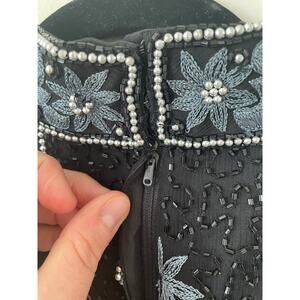 -Style Profile: VTG Whimsical All Over Stunning Floral Beaded Modest High Neckline with Asymmetric Hem, Sleeveless Top, Zip and Hook Back Closure, New Years Wedding NYE Elegant Y2K Papell Boutique Evening Made in India (tags removed)