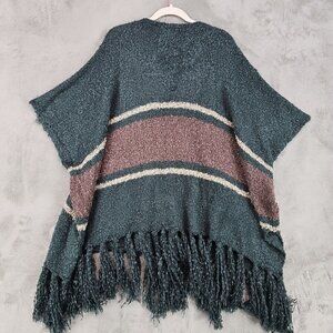 Free People Poncho Sweater Womens One Size Teal/Rose Stripe Bohemian Tasseled
