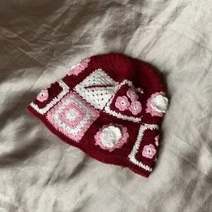 Pink and white crochet beanie