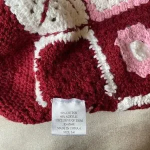 Pink and white crochet beanie, great condition, tag says size 2-4, girls beanie hat, bought in early 00’s, no brand on tag