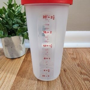 Tupperware measuring/ pour cup. cap screws on. measurements on wither side as shown. in excellent condition.