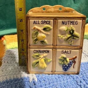 The sweetest ceramic wall pocket hanging featuring different spices.
