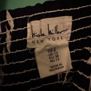 Maxi dress with pleated chest area, stretch back, side zipper, pockets. Linen rayon blend, machine washable. Modern floral geometric black and white pattern. Nicole Miller New York. US size 8.