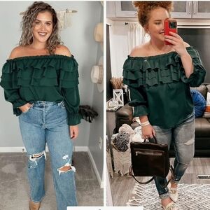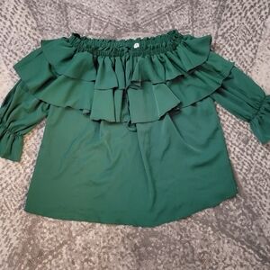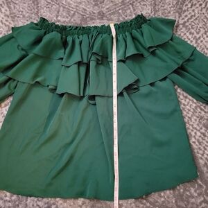 Byinns Women's Off The Shoulder Layered Ruffle Top in Emerald size XXL