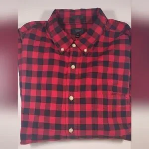 Mens J. CREW red/black Buffalo plaid button down shirt. XL. 100% cotton.