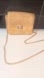 Metallic Gold Tan Woven Crossbody with Chain Strap. Goldtone Hardware. Turn lock closure. Minor scratches to hardware. Bag also has normal wear as shown in photos and video. Small pink dot on inside as shown in last photo. Make me an offer. *stock photo reflects similarities in bags