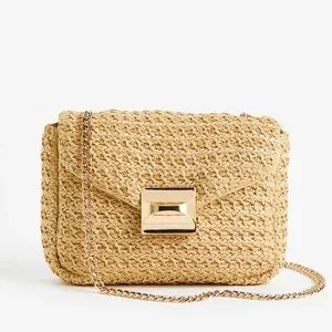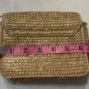 Mini Woven Crossbody Bag! Chain Link Strap. Turn Lock Closure. Metallic Gold