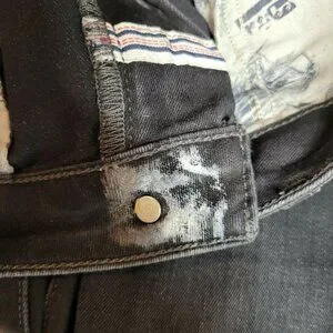 Tape on the button and tape residue on the inside of the button. See pictures.