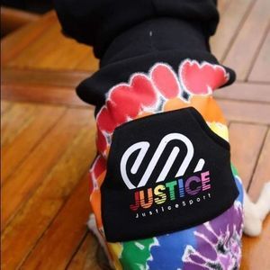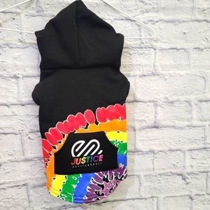 Black Printed Justice Logo Rainbow Hoodie , Fleeced-Lined Pullover with hood, Made from 100% Polyester. *Size Chart* in pictures.