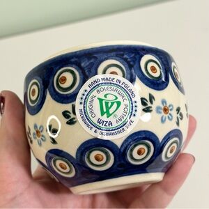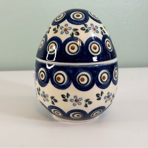 Boleslawiec Polish Pottery Easter Egg Container Candy 5” Handmade White Blue