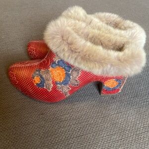Spring Step L’Artiste Red Leather Mule w/ Faux Fur Like New Condition Sz Euro 39