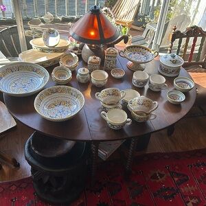 Red one 1 got on a trip to Italy years ago and the other 3 I got on 2 separate trips to Japan. Had them all for years. Selling lots of my kitchen stuff ( see the last picture). These 4 bowls come as a group but Selling all the other items separately. Bundle and save. Note the red Italian bowl has a tiny chip on the foot of the bottom. This does not hinder its use in any way. Selling as is. Great for nuts, crackers, grapes, or just trinkets. All about 4 1/4”…. Red one is 4.5”, and all 2 1/4” -2.5” high. Anthropologie Japanese home decor vibes.