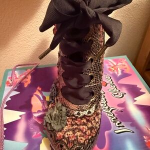 Gorgeous details, even on the souls of these unique lace up bootie heels by Irregular Choice