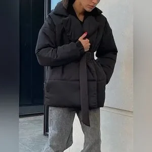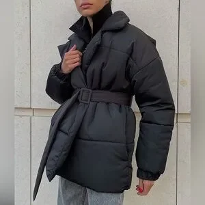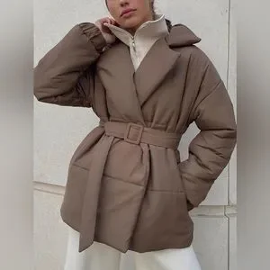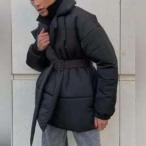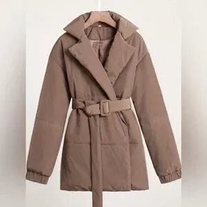 Classic Puffer Long Sleeve Winter Coat with Belt