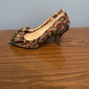 NWT Bettye by Bettye Muller Affair Crimson Brown Fabric Heels Size 8M Heel 3”