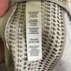 Rarely worn artsy open front jacket will be a staple in your closet. Detailed bead and sequin work trim this lovely blazer. Textured tweed like fabric. Please check my store for other gently used unique Chico’s clothing.
