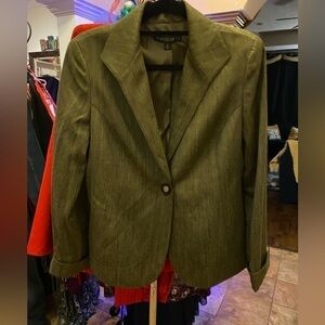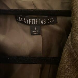 NWOT Lafayette 148 olive green tailored blazer. 1button closure. Padded shoulder with faux pockets.