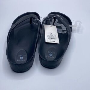 Show off your cool style as you step out in these Traci Footbed Sandals from Shade & Shore™. Featuring an open toe and back design that makes them easy to slide on and off, these slip-on flats feature a contoured footbed to keep your feet comfy. Simply pair these thong sandals with shorts and a basic tee or a sundress to flaunt your breezy warm-weather style.
